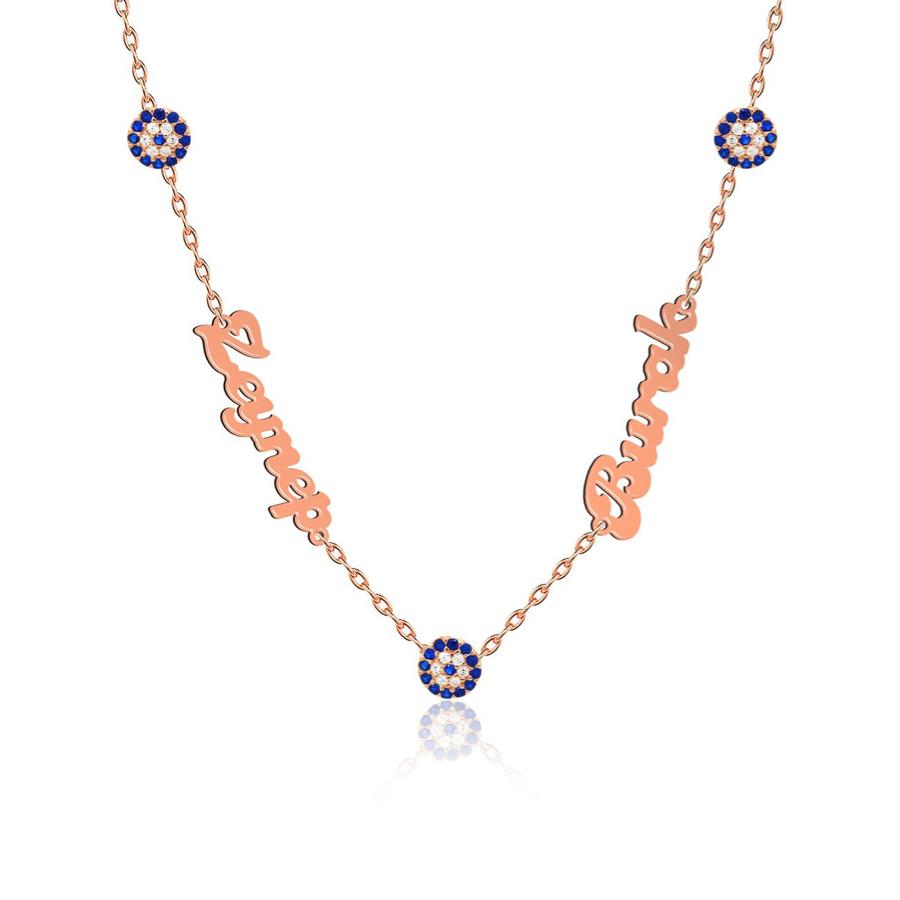 925 ayar kadın isimli ve nazarlı özel rose kolye solma kararma yapmaz 12 ay garantilidir